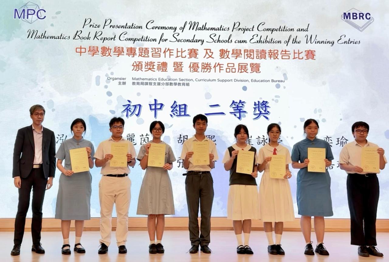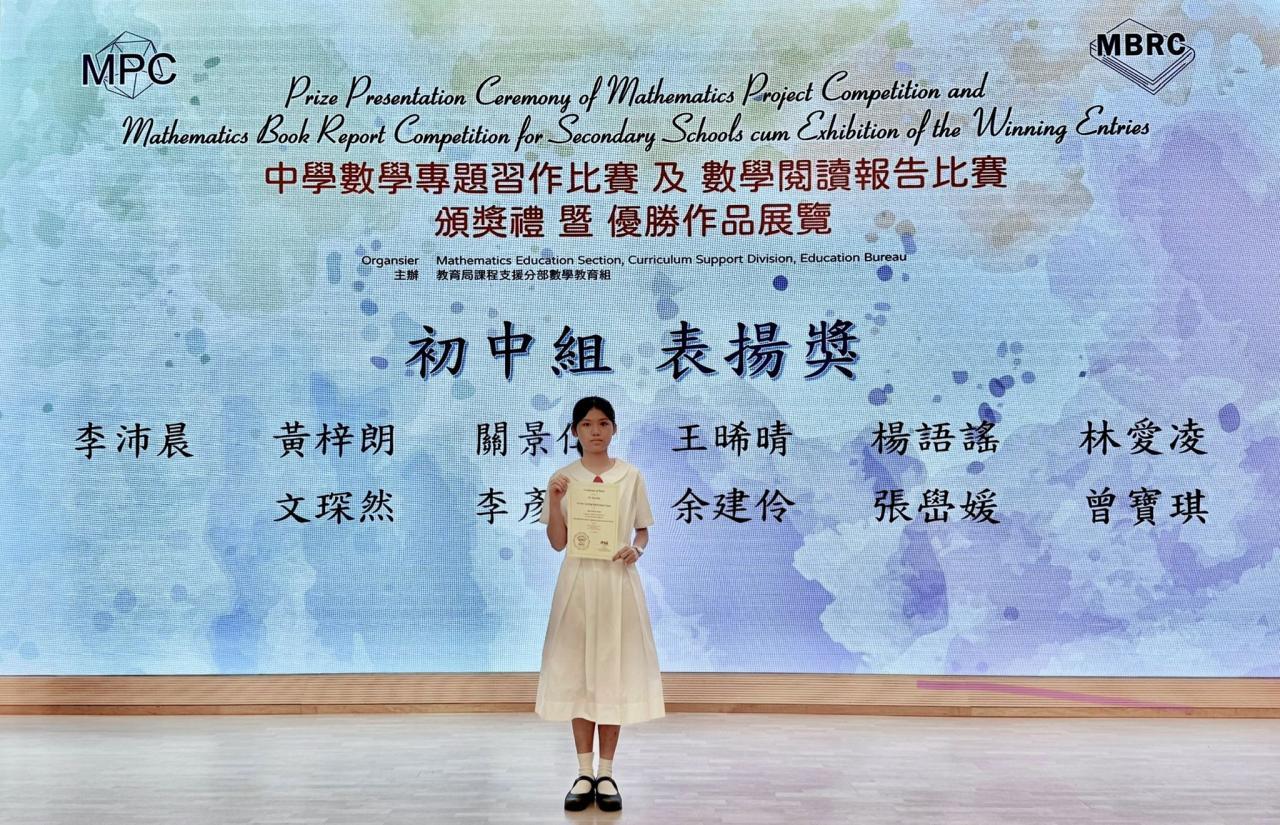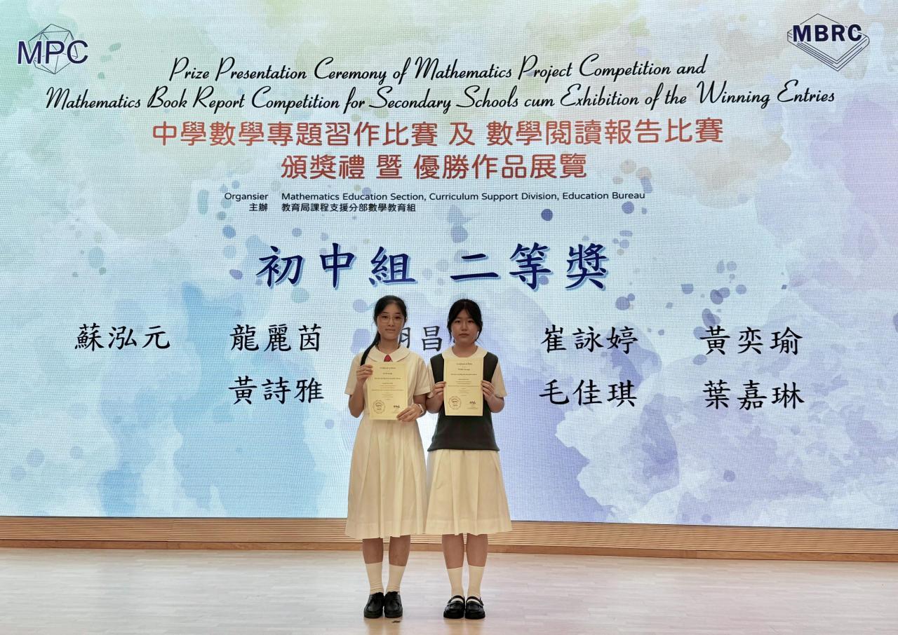本校學生在「2024至2025 年度中學數學閱讀報告比賽」經過專業評審下脫穎而出,榮獲初中組二等獎及表揚獎,而榮獲二等獎的同學分別是2A毛佳琪和2A黃詩雅;表揚獎的同學是3B余建伶。同學經過數月的努力,於報告中分享獨特的數學見解、同時也展示了出色的閱讀理解能力和優秀的報告技巧,終獲得佳績。