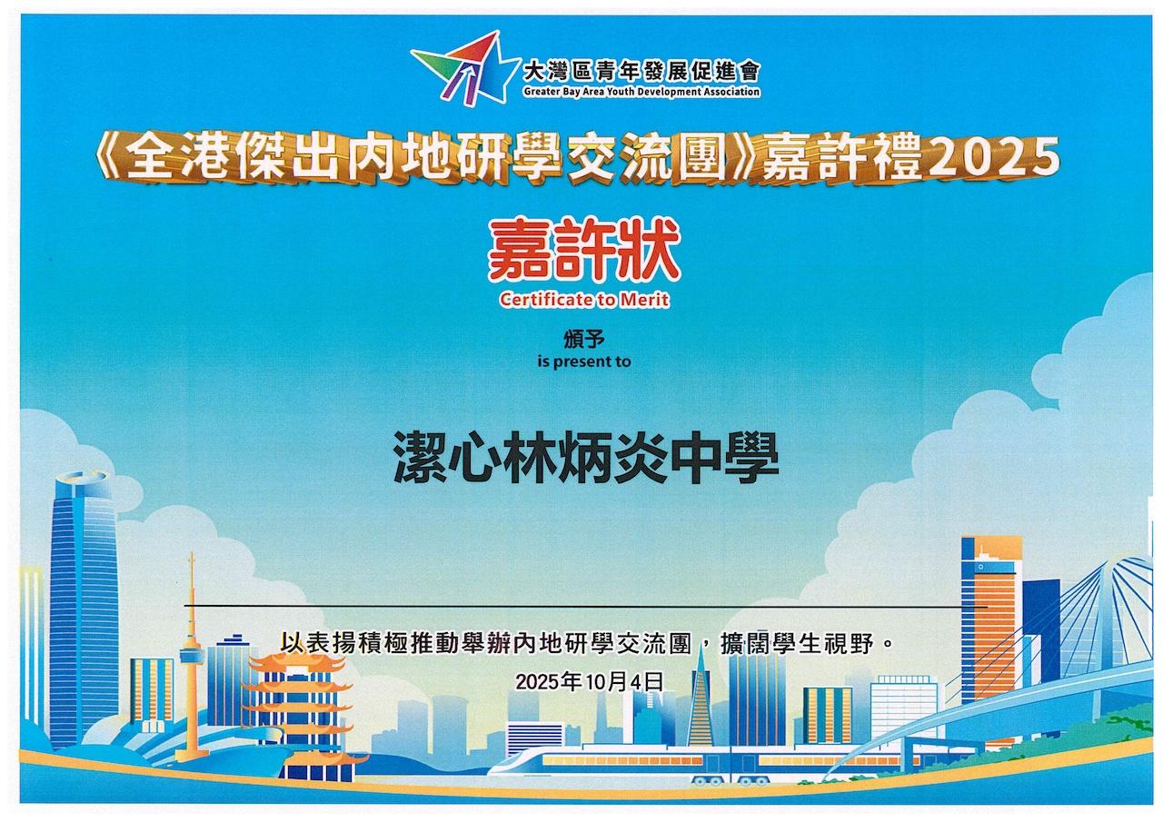 2025-10-07 潔心一直投放大量資源於創新科技的學與教,讓同學接觸更多創科知識、提升技能,進一步建構資訊素養。本年度更獲大灣區青年發展促進會嘉許,表揚本校積極推動舉辦內地研學交流團,肯定了學校為同學提供走出課室到內地親身體驗和交流的學習機會。 Latest News