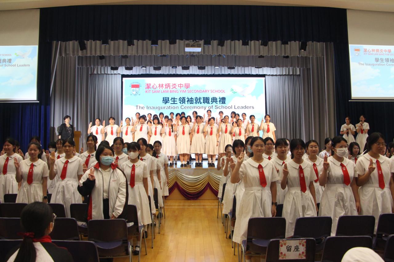 2025-11-04 本校2025-2026年度學生領袖就職典禮已圓滿舉行。典禮中,學生會、領袖生、學生輔導員、四社、公民教育及升旗隊、各學會主席於全體師生面前介紹其使命與貢獻,隨後接受授章並莊嚴宣誓,典禮最後由校長致勉勵詞。領袖生之意義在於以責任與服務為本、以身作則引領同儕,凝聚團隊、傳承校風,推動校園正向發展。