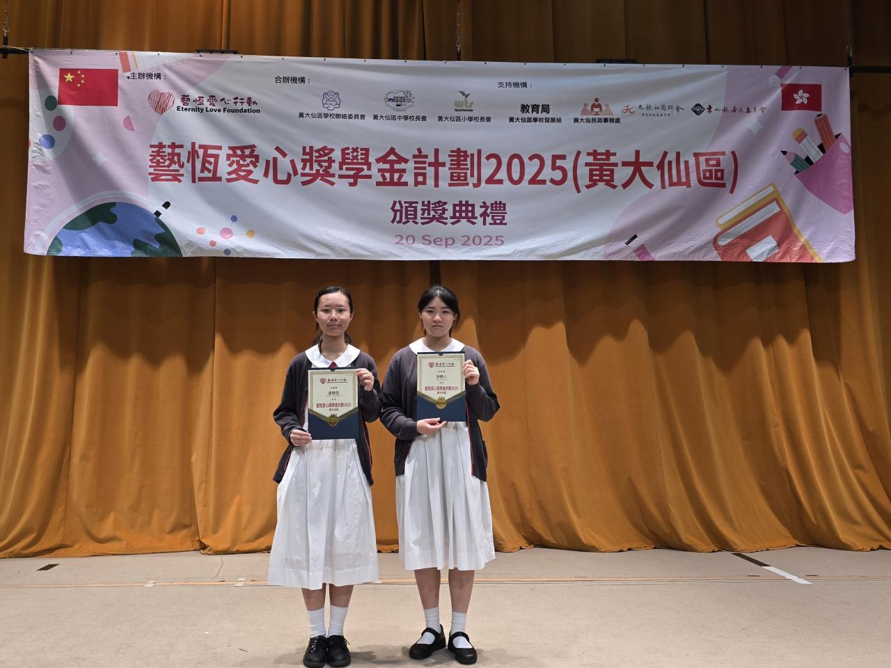 By admin, 8 January, 2026 2025-09-22 6A 薛軼心同學 和 6D 盧曉瑩同學獲「藝恆愛心行動獎學金」獲頒發獎狀及獎金,恭喜兩位中六同學!是項殊榮是對同學在學術及品行方面的高度肯定,希望同學們能繼續積極回饋社會,以愛心結合行動實踐潔心女兒的精神。 Academic Activities