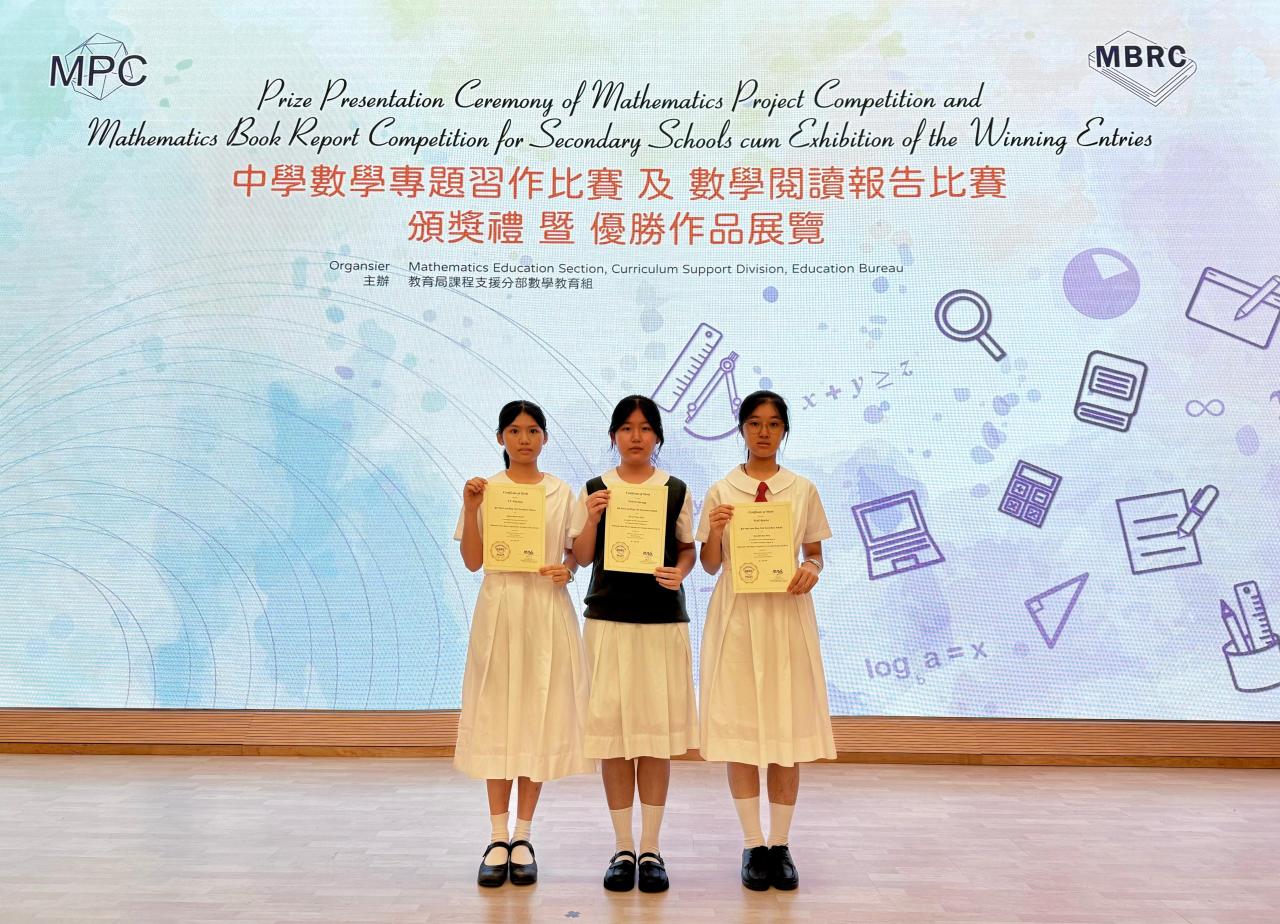 本校學生在「2024至2025 年度中學數學閱讀報告比賽」經過專業評審下脫穎而出,榮獲初中組二等獎及表揚獎,而榮獲二等獎的同學分別是2A毛佳琪和2A黃詩雅;表揚獎的同學是3B余建伶。同學經過數月的努力,於報告中分享獨特的數學見解、同時也展示了出色的閱讀理解能力和優秀的報告技巧,終獲得佳績。