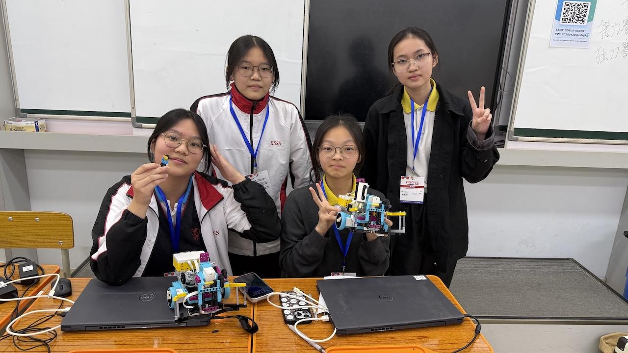 另外,在接力機械人賽中,中三及中四級學生團隊(包括3D鄭嘉鈴、4A鍾卓琳、4C陳文媛、鄧曉桐)設計兩台機械人,精準循線並運送接力棒至終點。本校作品憑藉穩定的效能,於兩次計分賽中均零失誤完成任務,最終勇奪亞軍。