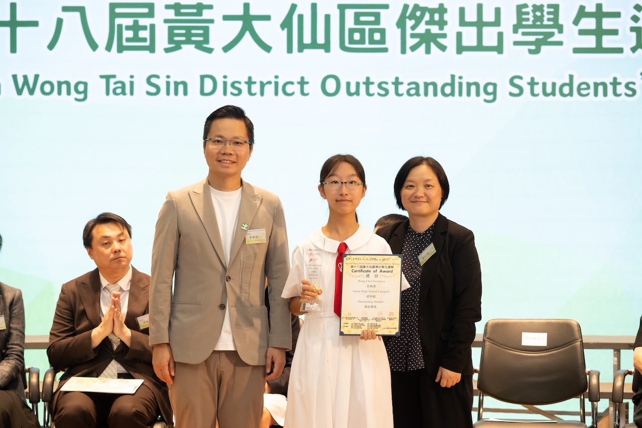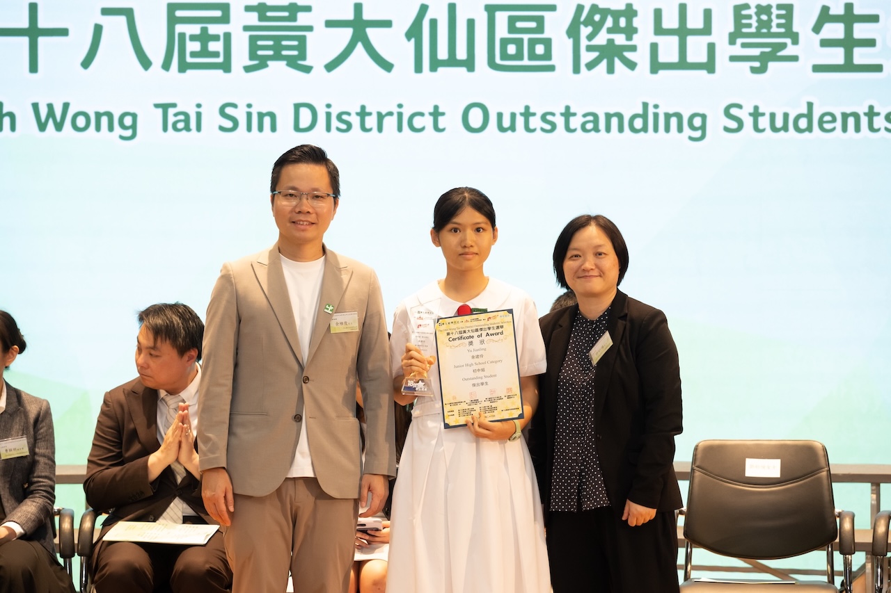 2026-01-03 恭賀王再苕同學及余建伶同學榮獲初中組傑出學生獎,盧曉瑩同學榮獲高中組優秀學生獎。另王再苕同學更獲得社區服務奬(個人)。是次選舉由東九龍青年社主辦,作為區內主要的青年團體本著「服務社區、建設社區、享受社區」的宗旨,在學界推廣積極上進及貢獻社會的風氣,舉辦「黃大仙區傑出學生選舉」,選出表現傑出的學生,以示嘉許。藉此鼓勵區內學生能以他們為榜樣,努力學習,裝備自己,將來貢獻社會。 得獎訊息